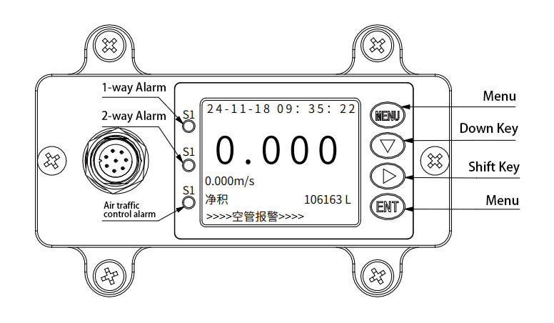 Displayed Data Instantaneous flow, instantaneous velocity, net total, single total, daily max/min, daily/monthly/yearly total