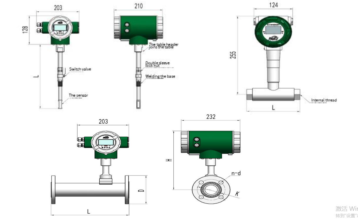 flange form DN25~ 150mm screw-type DN25~50mm plug-in DN125〜5000mm |