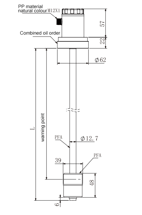 Measuring rod material: PFA/PVDF