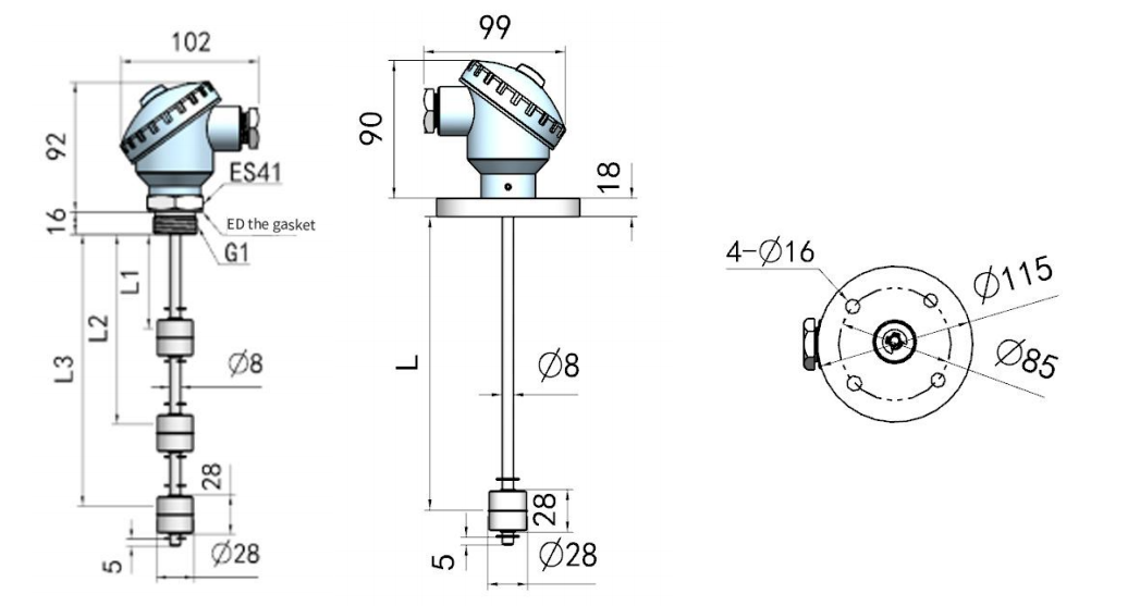 Get couponsWhen the liquid level rises or falls, it drives the stainless steel magnetic float ball to move up and down, and the float ball triggers the magnetic spring switch in the detection rod to send a signal.