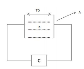 C = ( 0.0884 × K · A) / TD K = dielectric constant