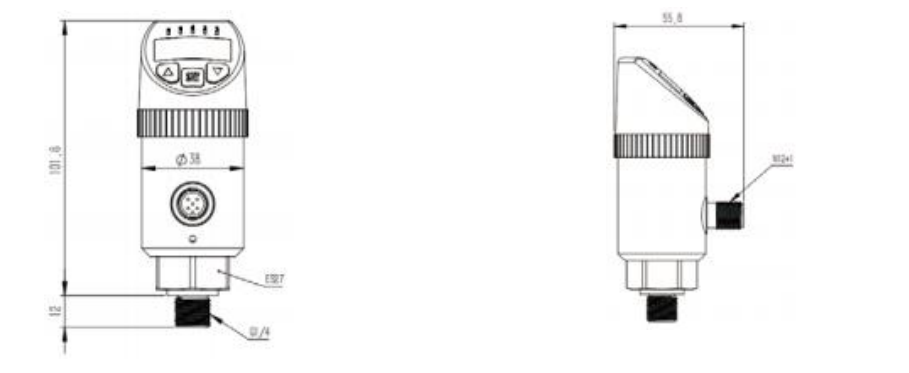 Maximum measurement range: -1...600bar. The digital LED displays pressure values and switch status. Menu settings include switch points, analog output start and end points, output functions, storage functions, and display functions, so settings do not need to be completed on site.