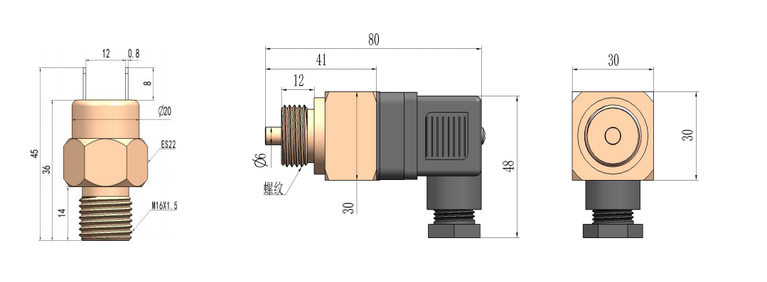 T200 and medium contact parts are made of yellow copper material, interface screw G1/4,G3/8,M22× 1.5 three options, temperature range of 30℃ ... 120 ℃ .
